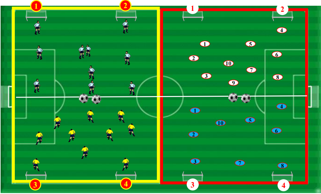 2023飞腾夏令营第2周——足球主题课发表时间:2023-06-22 10:07 ![]() FOOTBALL 飞腾夏令营 足球主题课 ![]() 一年一度的暑假已经到来 让足球成为假期不可或缺的运动项目 2023飞腾夏令营第二周主题活动 足球课程马上开始! 成人足球队 2023北加足联杯在Fremont Central Park体育场隆重开幕,市议员邵阳为开幕式致辞,腾飞教育集团杨总参加了开球仪式,腾飞教育集团多年来一直积极赞助华人组织的各类活动,这次比赛共有30支球队,400多名运动员参与比赛,他们将会在绿茵场上用友谊传递足球,用实力激发热情 ![]() ![]() ![]() ![]() 计划内容 1、宗旨: 快乐足球、大带小,全员参与 2、参与对象: 在校学生,4-13岁,零基础 3、年龄: (1) 4-5岁小班; (2) 5-6岁; (3) 7-8岁; (4) 8-9岁; (5) 9-10岁; (6) 10-11岁; (7) 11-12岁; (8) 12-13岁 4、形式: 足球游戏+足球技术、对抗训练 5、分组: 四个小组 (分队背心、颜色) ,分别起名 6、教练: 五个教练,一名主教,四名助教 (分别带领四个队) 7、场地: 11人制全场 8、训练框架: 准备活动+有球游戏+足球比赛 9、训练器材: 足球20个、打气筒2个、软体球门8个、分队背心40件 (每个颜色10件)、标志桶10个、标志盘40个; ![]() 活动框架 ![]() 热身 1、目的:神经、关节、肌肉 2、时间:20分钟 3、器材:分队服40件(每个颜色10件) 4、场地:半场 5、规则:1) 慢跑;2)拉伸 ![]() 玩游戏 寓教于乐,足球夏令营活动的目的,是通过足球游戏,观察孩子们运动能力,以及团队协作能力。 一、“贪吃蛇”; ![]() 二、“过山洞”; ![]() 技术 一、“小小快递员”; 1、目的:协作能力、速度、手脚配合灵活度 2、时间:10分钟 3、器材:标志盘40个、标志桶8个、足球12个(备用球4个)、分队背心40件(四种颜色) 4、场地:30米 5、规则: 1)四个队竖向列队,每支球队3个球。 2)四支队中第一名队员手持2个球,脚踢1个球,以及1个标志盘,听发令出发,在终点区域标志桶上放置标志盘后返回,与第二名队员击掌,把球交给第二名队员,第二名队员带球持盘重复第一名队员行为,其他队员依次接力进行。 3) 每个队所有人完成运球任务,时间最短的队获得胜利。 ![]() 二、“螃蟹运球”; 1、目的:协作能力、组织能力 2、时间:10分钟 3、器材:标志盘16个、标志桶4个,足球16个(备用球4个)、分队背心40件(四种颜色) 4、场地:30米 5、规则: 1)四个队,每支球队手牵手围城一圈,每支球队单次运送2个球,在队伍圆圈内相互踢球或运球。由起点向终点。听发令出发,到终点后跑回起点,再次围成圈运送2个球至终点,返回至起点。直至把4个球送到终点返回起点。 2) 每个队所有人完成运球任务,时间最短的队获得胜利。 ![]() 比赛 足球比赛(两个球,四个门): 1、目的:团队配合、组织能力 2、时间:15分钟+15分钟,上下办半场。共计30分钟 3、器材:软体球门2*4=8个、足球2*2=4个(备用球4个),分队背心40件(四个颜色) 4、场地:七人制场地 5、人数:10vs10 6、规则: 1)四个球门,2个足球的足球比赛,所有参赛队员只能用脚,不能用手。 2)四个队,按照年龄(4-6岁,7-9岁)分成两组,低年龄对低年龄,高年龄对高年龄比赛。 3)两个球队分别守住本方两个球门,进攻对方两个球门。 4)全场30分钟比赛(上下半场各15分钟),比分领先获得胜利。 ![]() 放松 1、目的:肌肉 2、时间:20分钟 3、场地:半场 4、规则:1)拉伸 ![]() ![]() 职业教练 ![]() Week 2 本周将由经验丰富的教练团队授课,教授孩子们足球技巧、战术和团队合作等方面的知识,帮助孩子们更好地理解和掌握足球技巧。在这里,孩子们一起训练、比赛,度过一个充满乐趣和挑战的暑假! ![]() ![]() 五 一 ![]() ![]() 六十多个孩子报名参加今年的足球夏令营活动,绿茵场上,孩子们相互追逐,欢声笑语回荡在加州的土地下;绿茵场上,孩子们欢声笑语,相互追逐,挥汗如雨,尽情释放青春的活力。 孩子们在活动中,克服天气炎热不利因素,充分发挥出良好的运动能力和高效的团队协作能力。 ![]() ![]() 五 一 ![]() ![]() ![]() Week 2 在中文课上,我们学习了成语、名著故事,练习了笔画、书写,朗诵了古诗、诗歌,在华夏中文的海洋中畅快地游览,收益匪浅! ![]() ![]() ![]() ![]() ![]() ![]() |